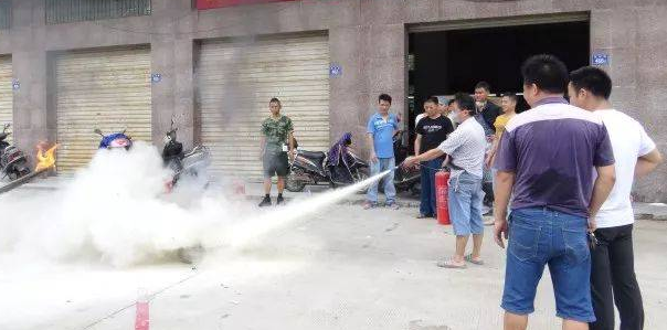 通過李組長的細致解說,在場大致了解。再請辦公室員工和產(chǎn)線員工各2名實操,通過王組長的輔導(dǎo),4名員工正確使用滅火器。