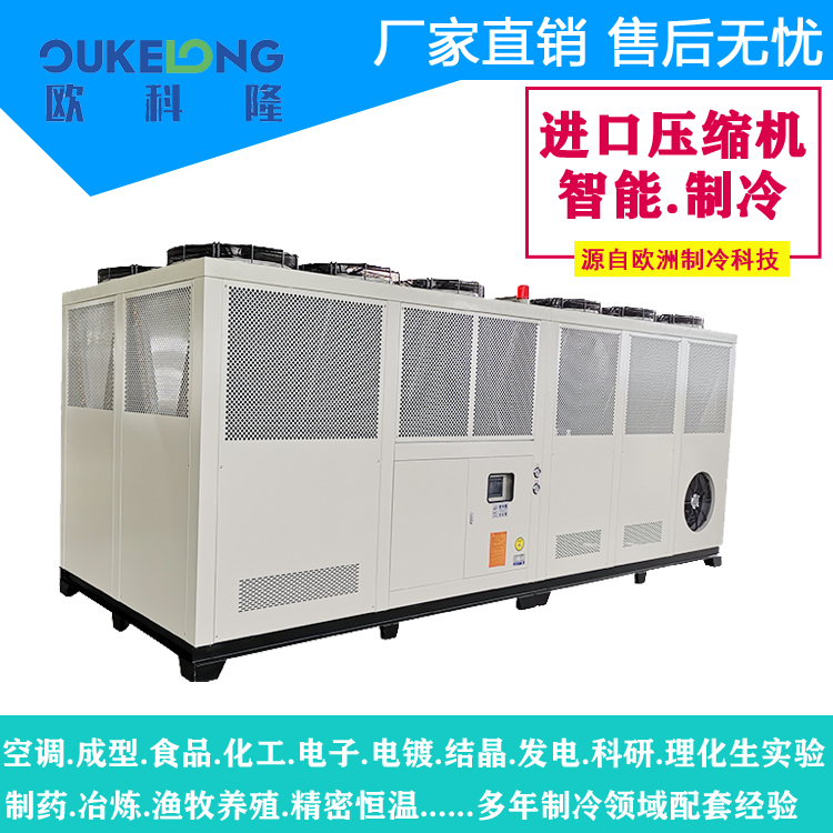 歐科隆150匹風冷螺桿式冷水機以工業級的穩定性和智能化管理功能,滿足大型項目的制冷需求,年運行節能率可達25%以上。